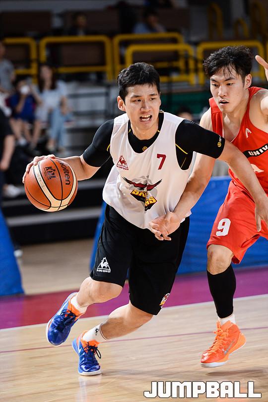 [점프볼/창원=유용우 기자] LG가 팬들을 위해 준비한 '두드림 데이'의 첫 번째 이벤트로 9일 오후 6시와 10일 낮 3시 30분에 홈구장인 창원실내체육관에서 공개적으로 고려대와 맞대결을 펼친다. 국가대표팀의 두 기둥, 김종규(207cm,C)와 이종현(206cm, C)의 맞대결로 큰 관심을 받고 있다. 9일 창원 실내체육관에서 열린 창원 LG와 고려대의 친선경기 1차전, LG 양우섭이 돌파를 하고 있다.