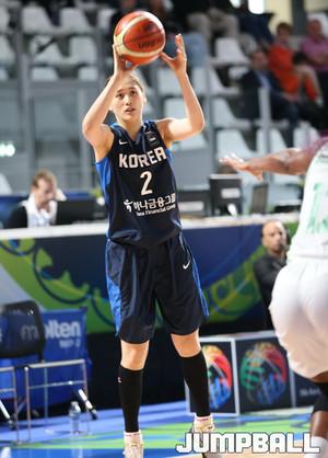 14일 프랑스 낭트 라 트로 카디에 메티로 폴리탄 체육관에서 열리는 2016 리우올림픽 최종예선전, 한국과 나이지리아의 경기에서 한국 대표팀의 김단비가 선수들을 모아 놓고 무엇인가 작전에 대해 이야기를 하고 있다.
