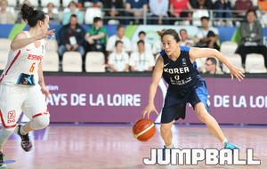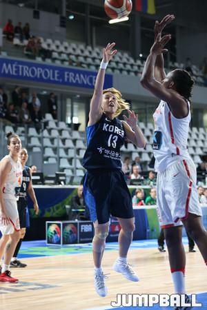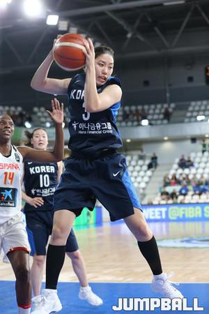 17일 프랑스 낭트 라 트로 카디에 메트로 폴리탄 체육관에서 열린 2016리우 올림픽 여자농구 최종예선전 한국과 스페인과의 8강전에서 파울로 경기가 끊기자 임영희와 배혜윤이 무언가 작전을 짜고 있다.