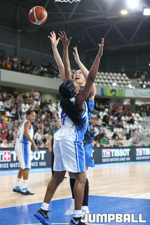 18일 프랑스 낭트 라 트로 카디에 메트로 폴리탄 체육관에서 열린 2016리우 올림픽 여자농구 최종예선 패자1회전 한국과 쿠바의 경기, 한국 대표팀의 강아정이 수비에도 아랑곳 하지 않고 3점슛을 날리고 있다.
