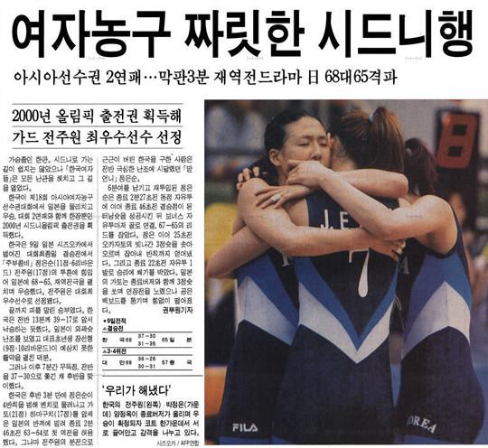 Q. 그때 1장뿐인 티켓을 일본 시즈오카에서 따냈죠. 일본에 68-65로 이겼는데 전주원 코치와 정은순 해설위원이 활약했습니다. 또 그 해 중국전에서도 17점차 대승을 거두었고요. 중국이 2-3 지역방어, 1-3-1 지역방어든 어떤 수비를 쓰든, 아무런 어려움 없이 깨부쉈던 것 같아요.