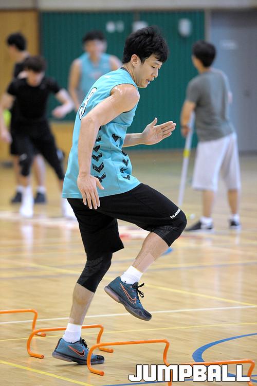 허웅이 장애물을 옆으로 건너뛰는 훈련을 하고있다.