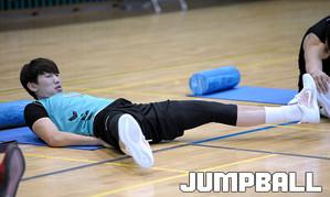 두경민이 밸런스를 잡는 훈련을 하고있다.