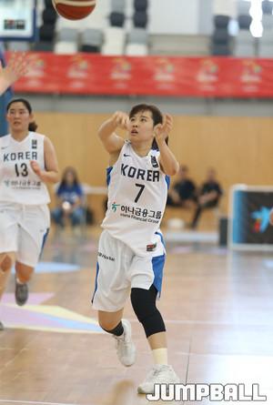 한국 U17여자농구대표팀은 한국 시간 24일 저녁에 열린 2016 FIBA U17 여자농구대회 예선 두 번째 이탈리아와의 경기에서 이지우가 3점슛을 터트리며 추격의 발판을 만들고 있다.