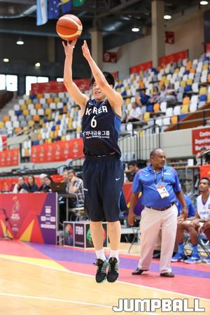 26일(이하 한국시간) 스페인 사라고사 시골로 체육관에서 열린 2016 U17 FIBA 여자농구대회 예선리그 3차전 한국과 체코의 경기에서 한국 대표팀의 이지우가 작은 키에도 투지 있게 돌파를 시도하다 점프슛을 날리고 있다.