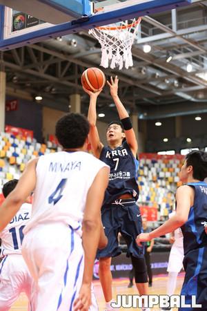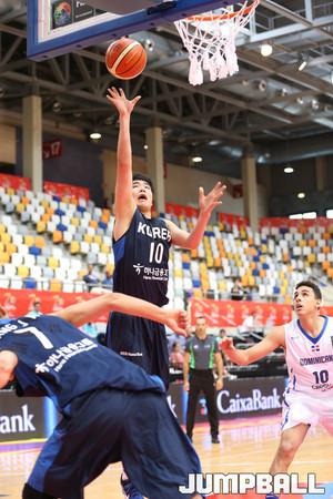26일(이하 한국시간) 스페인 사라고사 시골로 체육관에서 열린 2016 U17 FIBA 여자농구대회 예선리그 3차전 한국과 체코의 경기에서 한국 대표팀의 임예솔이 장신 선수들 사이에서 온 힘을 다해 리바운드에 나서고 있다.