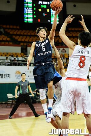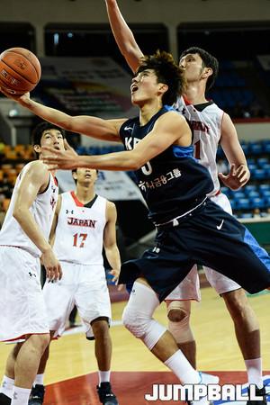 30일 잠실학생체육관에서 열린 '2016 아시아-퍼시픽 대학농구 챌린지' 한국B와 일본의 경기, 한국B 안영준이 일본선수들과 리바운드 경쟁을 벌이고 있다.