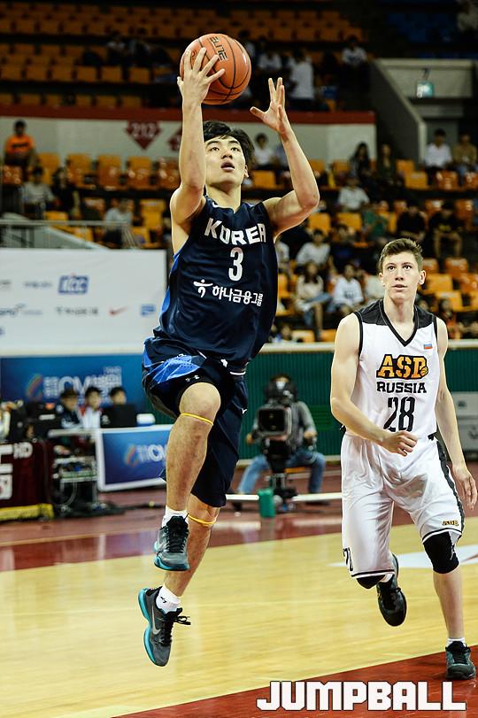 3일 잠실학생체육관에서 열린 '2016 아시아-퍼시픽 대학농구 챌린지' 러시아와 한국A의 준결승 경기, 한국A 천기범이 레이업 득점을 올리고 있다.