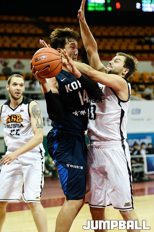 3일 잠실학생체육관에서 열린 '2016 아시아-퍼시픽 대학농구 챌린지' 러시아와 한국A의 준결승 경기, 한국A 이종현이 러시아의 밀착수비를 피해 패스를 내주고 있다.