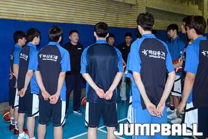 김동우 코치가 선수들의 리바운드 훈련을 위해 공을 던져주고있다.