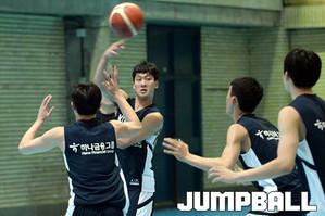 하윤기가 수비 연습을 하고있다.