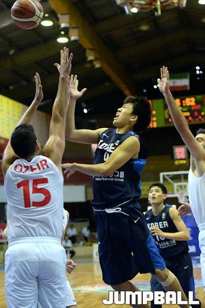 23일 이란(테헤란)에서 열린 제24회 FIBA U18 아시아농구선수권대회 한국 과 레바논의 경기. 하윤기가 돌파중에 파울을 당하고있다.