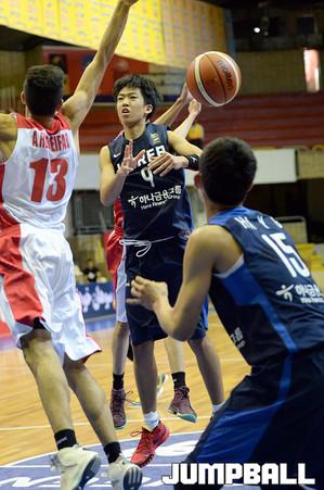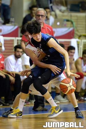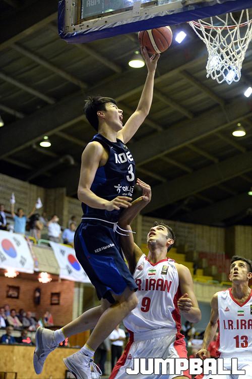 26일 이란(테헤란)에서 열린 제24회 FIBA U18 아시아농구선수권대회 예선전 한국 과 이란 의 경기, 신민석이 팁인을 노리고 점프를 할때 이란 수비한테 반칙을 당하고있다.