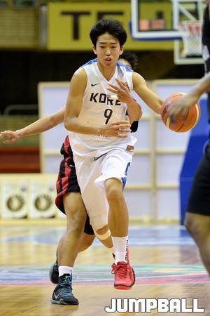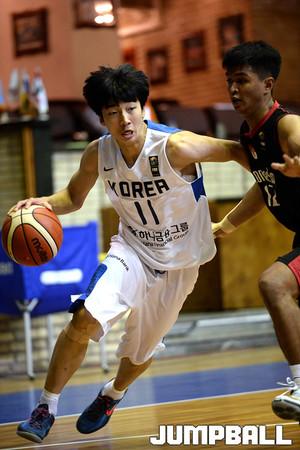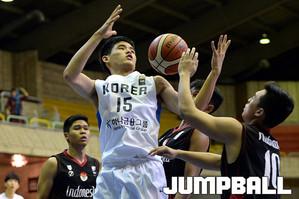 27일 이란(테헤란)에서 열린 제24회 FIBA U18 아시아농구선수권대회 예선전 한국 과 인도네시아 의 경기, 박지원이 인도네시아 수비를 피해 패스를 해주고있다.