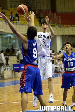 29일 이란(테헤란)에서 열린 제24회 FIBA U18 아시아농구선수권대회 8강전 한국 과 필리핀 의 경기, 하윤기가 필리핀 선수와 리바운드를 다투고있다.