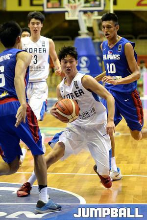 30일 이란(테헤란)에서 열린 제24회 FIBA U18 아시아농구선수권대회 4강전 한국 과 이란 의 경기, 박지원이 이란 수비를 피해 점프슛을 시도하고있다.
