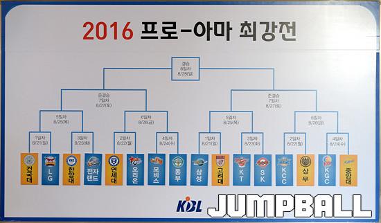 프로와 아마가 격돌하는 ‘2016 프로-아마 최강전’은 오는 8월 21일(일)부터 28일(일)까지 8일간 잠실학생체육관에서 개최되며 프로 10개팀과 대학 5개팀, 신협 상무까지 총 16개팀이 참가한다. 대회 1차전부터 프로와 아마가 맞붙게 되며, 프로팀은 외국선수를 제외한 국내 선수들이 대회에 참가한다.