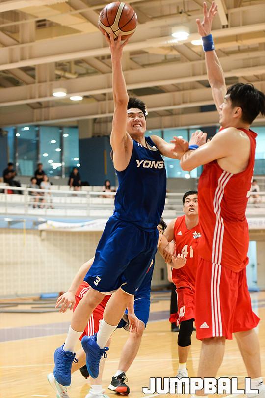 [점프볼=고양/유용우 기자] 10일 고양 종합체육관내 보조체육관에서 열린 고양 오리온과 연세대의 연습경기, 연세대 김무성이 돌파하며 레이업을 올리고 있다.