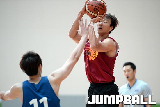 11일 이천 챔피언스파크에서 열린 창원 LG 와 동국대 의 연습 경기, LG 김영환이 동국대 수비를 피해 점프슛을 시도하고있다.