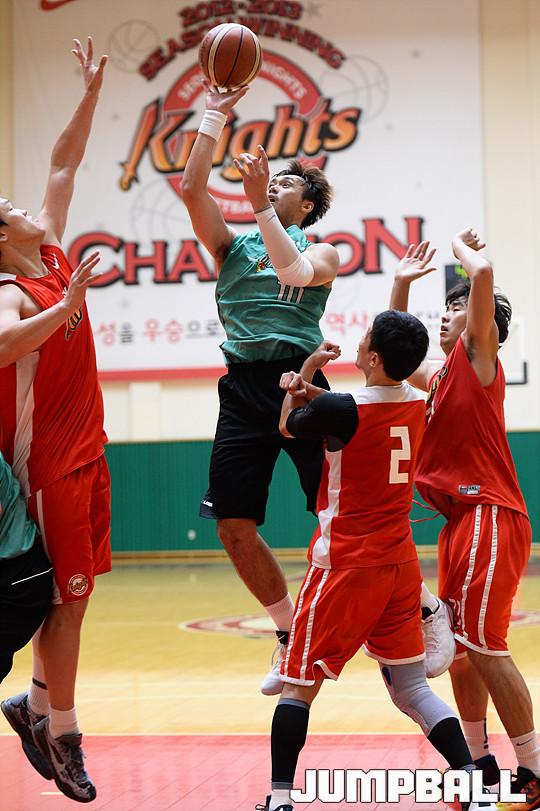[점프볼=양지/유용우 기자] 11일 용인에 위치한 SK 양지체육관에서 열린 서울 SK와 원주 동부의 연습경기, 동부 김태홍이 슛을 쏘고 있다.