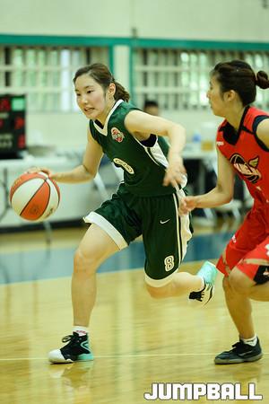 12일 용인 삼성트레이닝센터(STC) 에서 열린 삼성 블루밍스 와 중국 산시 와의 연습경기, 삼성생명 박태은이 부상 방지 마스크를 쓴채 연습을 하고있다.