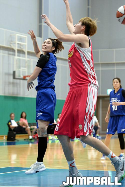 12일 용인 삼성트레이닝센터(STC) 에서 열린 삼성 블루밍스 와 중국 산시 와의 연습경기, 삼성생명 박하나가 골밑으로 백패스를 해주고있다.