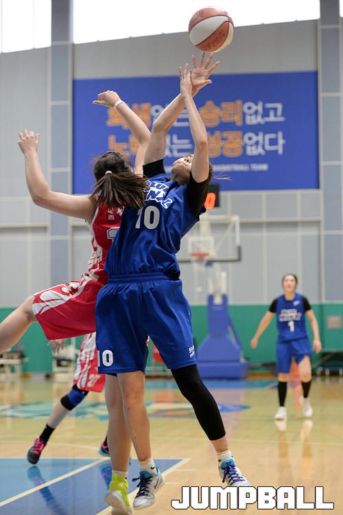 12일 용인 삼성트레이닝센터(STC) 에서 열린 삼성 블루밍스 와 중국 산시 와의 연습경기, 삼성생명 고아라가 리바운드를 잡고있다.