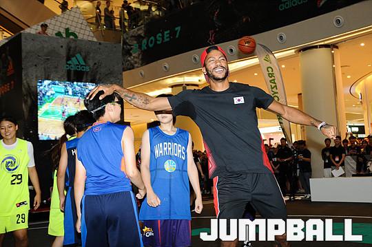 [점프볼=잠실/유용우 기자] 15일 NBA 농구선수 데릭로즈가 송파구 잠실 롯데월드몰 아트리움광장에서 열린 '아디다스 크레이지코트 2016' 이벤트에 참석해 한국의 농구팬들 앞에서 이벤트 경기를 치르고 있다.