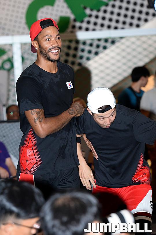 [점프볼=잠실/유용우 기자] 15일 NBA 농구선수 데릭로즈가 송파구 잠실 롯데월드몰 아트리움광장에서 열린 '아디다스 크레이지코트 2016' 이벤트에 참석해 한국의 농구팬들 앞에서 이벤트 경기를 치르고 있다.