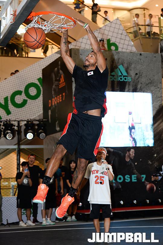 [점프볼=잠실/유용우 기자] 15일 NBA 농구선수 데릭로즈가 송파구 잠실 롯데월드몰 아트리움광장에서 열린 '아디다스 크레이지코트 2016' 이벤트에 참석해 한국의 농구팬들 앞에서 이벤트 경기를 치르고 있다.