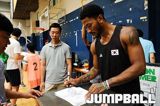[점프볼=잠실/유용우 기자] 16일 잠실체육관 보조경기장에서 NBA 뉴욕 닉스의 데릭 로즈가 삼성 썬더스 내 리틀썬더스 20여명을 대상으로 농구 클리닉을 진행하였다. 참가자들이 농구클리닉을 마치고 단체촬영을 진행하고 있다.