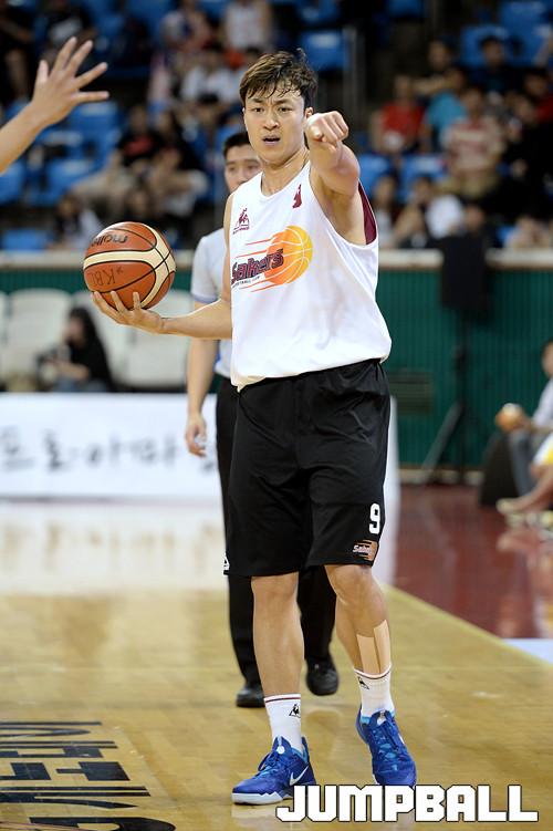 21일 잠실 학생체육관에서 열린 2016 KCC 프로-아마 최강전 첫날 건국대 - LG 의 경기, LG 김영환이 선수들에게 방향을 가리키며 리딩을 하고있다.