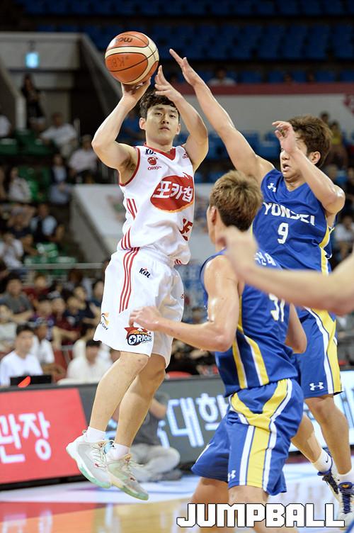 22일 잠실 학생체육관에서 열린 2016 KCC 프로-아마 최강전 연세대 - 오리온 의 경기, 오리온 조효현이 연세대 허훈의 수비를 피해 패스를 해주고있다.