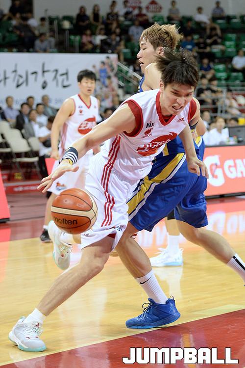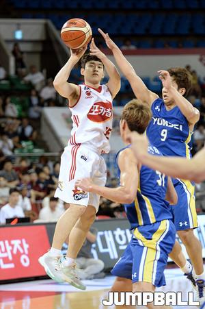 22일 잠실 학생체육관에서 열린 2016 KCC 프로-아마 최강전 연세대 - 오리온 의 경기, 오리온 장재석이 돌파를 시도하고있다.