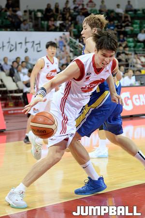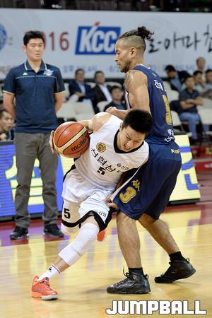 22일 잠실 학생체육관에서 열린 2016 KCC 프로-아마 최강전 KCC - 상무 의 경기, 상무 김시래가 KCC 수비를 피해 3점슛을 시도하고있다.