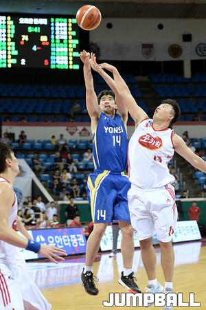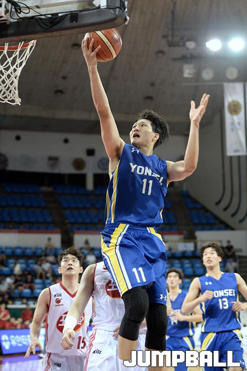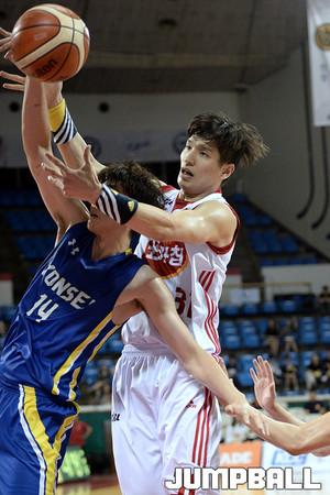 22일 잠실 학생체육관에서 열린 2016 KCC 프로-아마 최강전 연세대 - 오리온 의 경기, 연세대 안영준이 오리온 수비를 제치고 레이업슛을 시도하고있다.