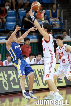 22일 잠실 학생체육관에서 열린 2016 KCC 프로-아마 최강전 KCC - 상무 의 경기, KCC 하승진이 리바운드를 잡고있다.