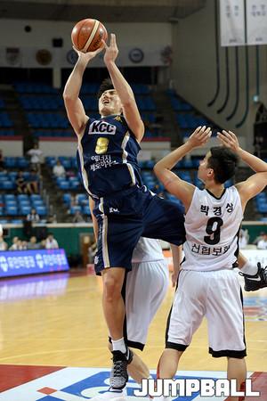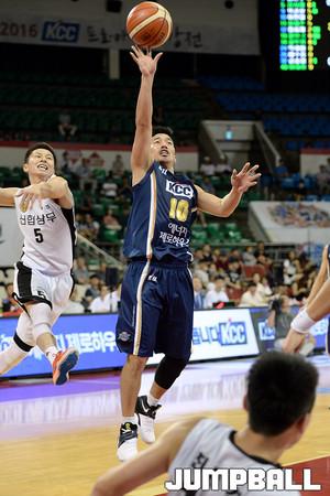 22일 잠실 학생체육관에서 열린 2016 KCC 프로-아마 최강전 KCC - 상무 의 경기, KCC 이현민이 상무 김시래를 제치고 돌파를 시도하고있다.