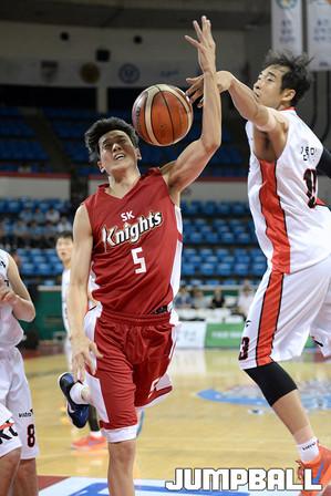 23일 잠실 학생체육관에서 열린 2016 KCC 프로-아마 최강전 SK - KT 의 경기, KT 김우겸이 상대수비를 제치고 돌파를 시도하고있다.