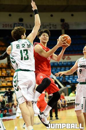 [점프볼=잠실/유용우 기자] 24일 잠실 학생체육관에서 열린 2016 KCC 프로-아마 최강전 동부와 모비스의 경기, 모비스 전준범이 공격을 성공시키고 백코트하고 있다.