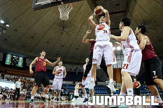 [점프볼=잠실/유용우 기자] 27일 잠실 학생체육관에서 열린 2016 KCC 프로-아마 최강전, 창원 LG와 고양 오리온의 4강전 경기, 오리온 장재석이 리바운드를 잡고 있다.