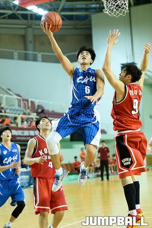 07일 연세대 체육관에서 열린 2016 대학농구리그 연세대 와 성균관대 의 경기, 연세대 안여준이 상대 수비를 피하며 3점슛을 시도하고있다.