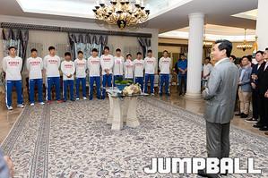 [점프볼=테헤란/유용우 기자] 15일 이란 대사관저에서 대한민국 남자농구대표팀을 위한 만찬이 있었다. '2016 FIBA 아시아 첼린지' 8강전을 앞둔 남자농구대표팀을 격려하기 위해 주이란한국대사관이 마련한 자리이다. 남자농구대표팀은 16일 6시 30분에 대만과 8강전을 치룬다. 만찬에 참석한 대사관 직원들과 교민들이 한국남자농구대표팀의 승리를 기원하며 단체촬영을 하고 있다.