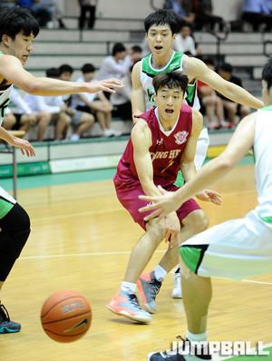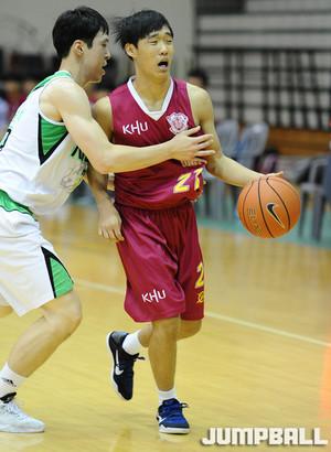 19일 건국대 충주캠퍼스 체육관에서 열린 2016 남녀 대학농구리그 8강 플레이오프 건국대와 경희대의 경기, 건국대 김진유가 파이팅 넘치는 공격력을 펼치며 상대의 수비를 뿌리치고 있다.