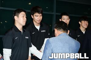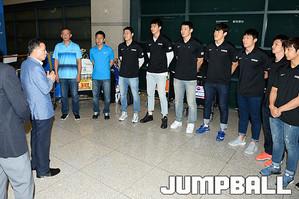 [점프볼=인천/유용우 기자] 20일 남자농구대표팀이 이란 테헤란에서 열린 '2016 FIBA 아시아 첼린지'를 마치고 귀국하였다. 남자농구대표팀은 이란 하다디의 높이에 막히며 준우승을 차지하였다. 남자농구대표팀이 해단식을 가지고 있다. 박한 단장이 대회와 관련해 앞으로의 발전 방향에 대해 이야기 나누고 있다.