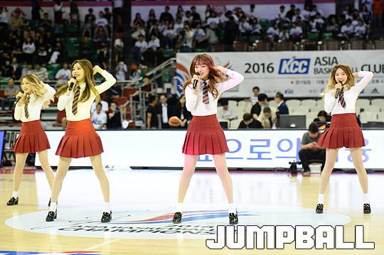 [점프볼=잠실/유용우 기자] 03일 잠실학생체육관에서 열린 '2016 아시아프로농구챔피언쉽' 전주 KCC와 뉴질랜드 웰링턴 세인츠의 경기,걸그룹 블루미가 하프타임 공연을 펼치고 있다.