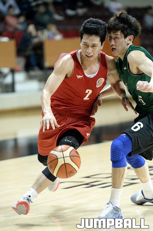 07일 안양 실내체육관 에서 열린 원주 동부 와 안양 KGC 의 연습경기, KGC 김기윤이 동부 두경민의 수비를 피해 돌파를 시도하고있다.