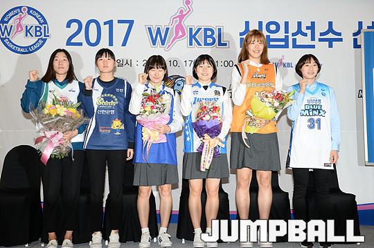[점프볼=양재/유용우 기자] 17일 양재동에 위치한 더케이 호텔 가야금홀에서 열린 '2017 WKBL 신입선수 선발회' 1라운드 1순위로 뽑힌 박지수가 사진촬영에 임하고 있다.