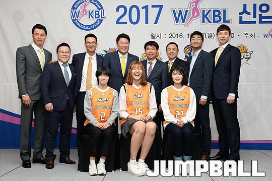 [점프볼=양재/유용우 기자] 17일 양재동에 위치한 더케이 호텔 가야금홀에서 열린 '2017 WKBL 신입선수 선발회' 각팀 선수단이 단체촬영에 임하고 있다.