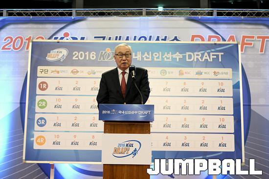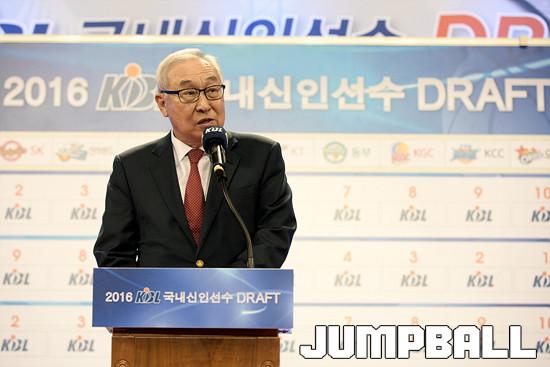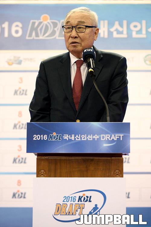 18일 잠실 학생체육관에서 열린 2016 KBL 국내신인선수 드래프트, KBL 김영기 총재가 드래프트에 앞서 인삿말을 하고있다.